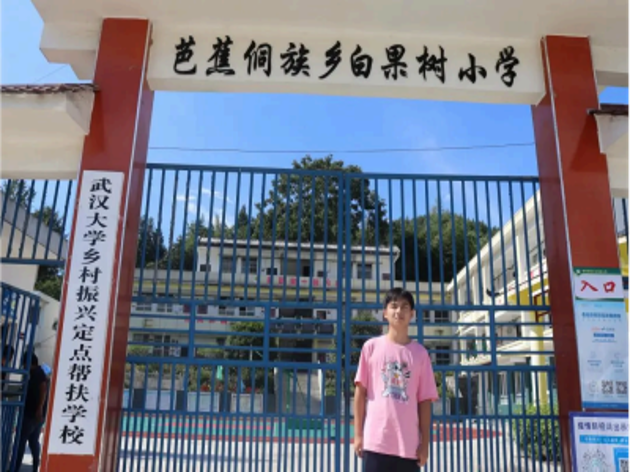 蔡申煜在武汉大学定点帮扶学校芭蕉侗族乡白果树小学(图片来源:澎湃新闻)